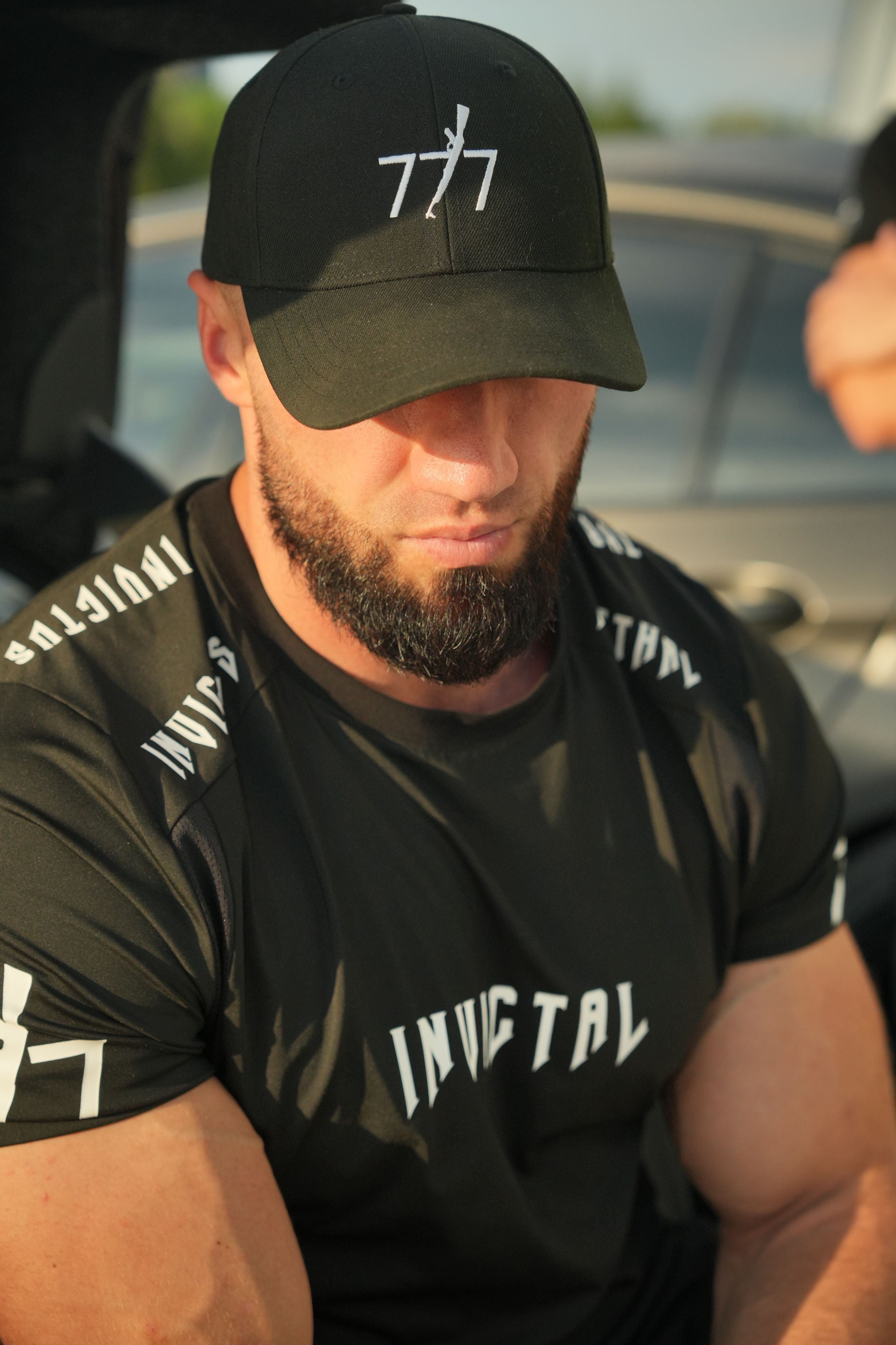 The ACE 777-1 Cap is built from 100% polyester with a 5-panel design and adjustable metal buckle. Featuring [7 AK-47 77] embroidery on the front, an Ace emblem on the side, and INVICTAL script on the back.